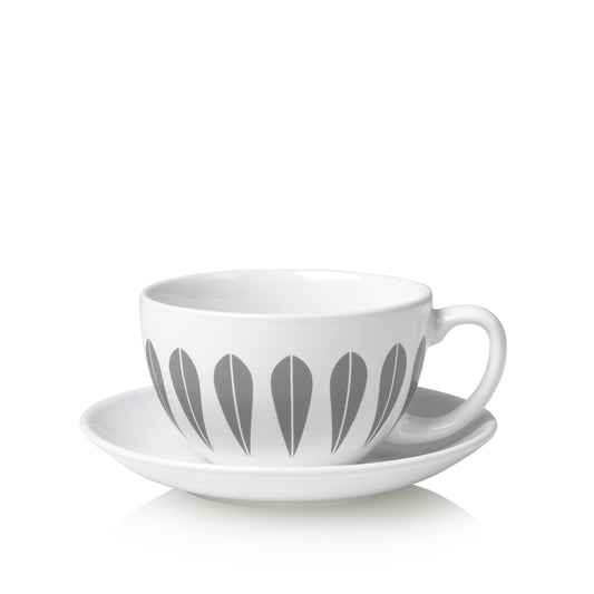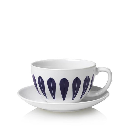 Lotus Tea Cup And Saucer | White, Dark Blue